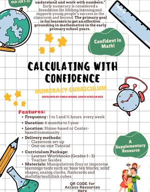 This curriculum supplements formal education and provides students in grades 1, 2, and 3 with a strong foundation in mathematics. The curriculum includes Teacher Guides and Learner Guides for each of the three grades.