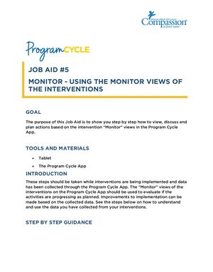The purpose of this Job Aid is to show you step by step how to view, discuss and plan actions based on the intervention “Monitor” views in the Program Cycle App.