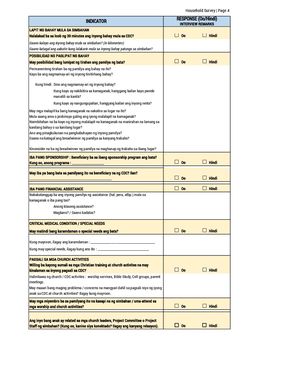The Household Survey consists of questions that will help FCPs assess whether the child they will register is the right fit for the program. The questions in the household survey includes the family’s proximity to the church, their possibility of relocation, other financial assistance the family might be receiving, among others.